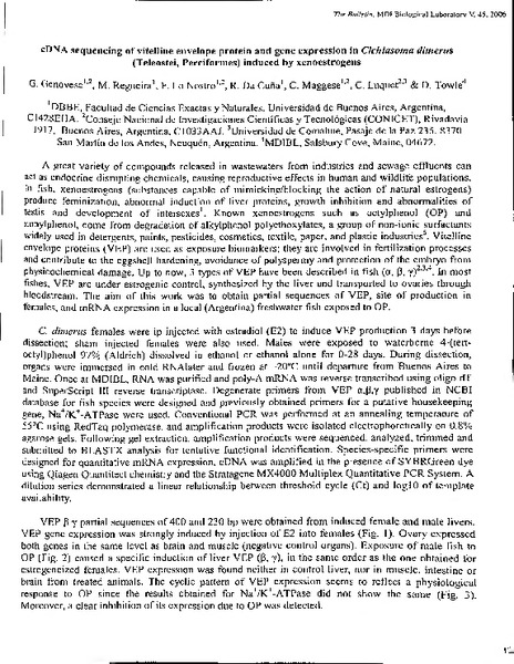 “cDNA Sequencing of Vitelline Envelope Protein and Gene Expression in Cichlasoma dimerus (Teleostei, Perciformes) Induced by Xenoestrogens,” MDI Biological Laboratory, accessed December 21, 2025, https://digitalarchive.mdibl.org/items/show/2676.Item 12894