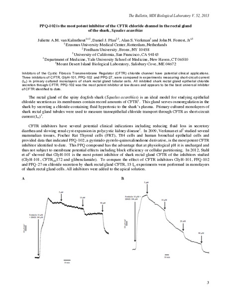 “PPQ-102 is the Most Potent Inhibitor of the CFTR Chloride Channel in the Rectal Gland of the Shark, Squalus acanthias,” MDI Biological Laboratory, accessed January 28, 2026, https://digitalarchive.mdibl.org/items/show/2681.Item 12979