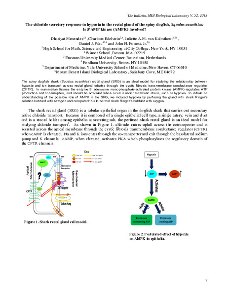 “The Chloride Secretory Response to Hypoxia in the Rectal Gland of the Spiny dogfish, Squalus acanthias: Is 5'AMP Kinase (AMPK) Involved?,” MDI Biological Laboratory, accessed January 28, 2026, https://digitalarchive.mdibl.org/items/show/2683.Item 12981