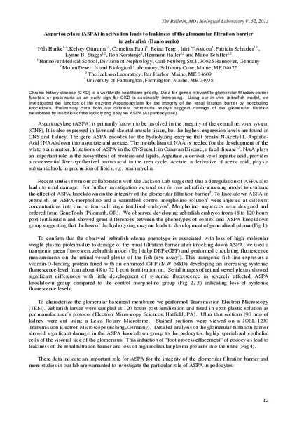 “Aspartoacylase (ASPA) Inactivation Leads to Leakiness of the Glomerular Filtration Barrier in Zebrafish (Danio rerio),” MDI Biological Laboratory, accessed January 28, 2026, https://digitalarchive.mdibl.org/items/show/2685.Item 12983