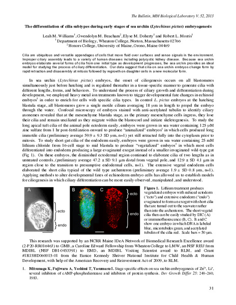 “The Differentiation of Cilia Subtypes During Early Stages of Sea Urchin (Lytechinus pictus) Embryogenesis,” MDI Biological Laboratory, accessed January 28, 2026, https://digitalarchive.mdibl.org/items/show/2693.Item 12991
