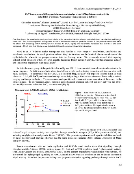 “Zn²+ Increases Multidrug Resistance-Associated Protein 2 (Mrp2) Transport Activity in Killifish (Fundulus heteroclitus) Renal Proximal Tubules,” MDI Biological Laboratory, accessed January 28, 2026, https://digitalarchive.mdibl.org/items/show/2713.Item 12926