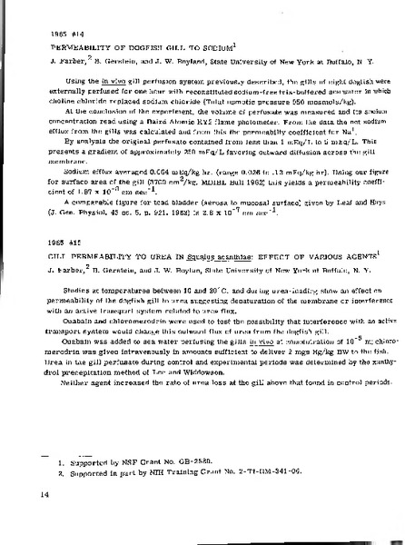 Permeability of Dogfish Gill to Sodium Identifier: 10726 Title: Permeability of Dogfish Gill to Sodium Author: Jay FarberState University of New York, Buffalo Barbara GersteinState University of New York, Buffalo John W. BoylanState University of New York, Buffalo Date: 1965 Species: Squalus acanthiasSpiny dogfish Type: Bulletin, Report Bulletin: Volume 05 - 1965 Report: 14 Citation “Permeability of Dogfish Gill to Sodium,” MDI Biological Laboratory, accessed March 20, 2026, https://digitalarchive.mdibl.org/items/show/2733.Item 10726 Save this item as a PDF file