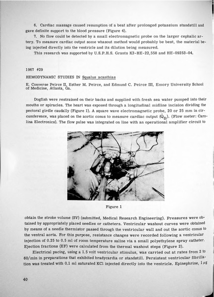 Hemodynamic Studies in Squalus acanthias Identifier: 10815 Title: Hemodynamic Studies in Squalus acanthias Author: E. Converse Peirce, IIEmory University Esther M. PeirceEmory University Edmund C. Peirce, IIIEmory University Date: 1967 Species: Squalus acanthiasSpiny dogfish Type: Bulletin, Report Bulletin: Volume 07 - 1967 Report: 29 Citation “Hemodynamic Studies in Squalus acanthias,” MDI Biological Laboratory, accessed March 18, 2026, https://digitalarchive.mdibl.org/items/show/2789.Item 10815 Save this item as a PDF file