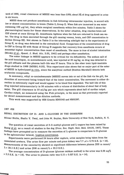 Renal Excretion of D- and L-Glucose in the Goosefish Identifier: 10824 Title: Renal Excretion of D- and L-Glucose in the Goosefish Author: Hilmar StolteState University of New York, Buffalo Shafic Y. TwalState University of New York, Buffalo John W. BoylanState University of New York, Buffalo Date: 1967 Species: Lophius americanusGoosefish Type: Bulletin, Report Bulletin: Volume 07 - 1967 Report: 38 Citation “Renal Excretion of D- and L-Glucose in the Goosefish,” MDI Biological Laboratory, accessed March 21, 2026, https://digitalarchive.mdibl.org/items/show/2798.Item 10824 Save this item as a PDF file