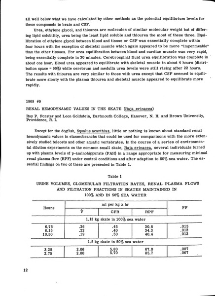 Renal Hemodynamic Values in the Skate (Raja erinacea) Identifier: 10874 Title: Renal Hemodynamic Values in the Skate (Raja erinacea) Author: Roy P. ForsterDartmouth College Leon GoldsteinBrown University Date: 1969 Species: Raja erinacea (now Leucoraja erinacea)Little skate Type: Bulletin, Report Bulletin: Volume 09 - 1969 Report: 9 Citation “Renal Hemodynamic Values in the Skate (Raja erinacea),” MDI Biological Laboratory, accessed March 21, 2026, https://digitalarchive.mdibl.org/items/show/2811.Item 10874 Save this item as a PDF file