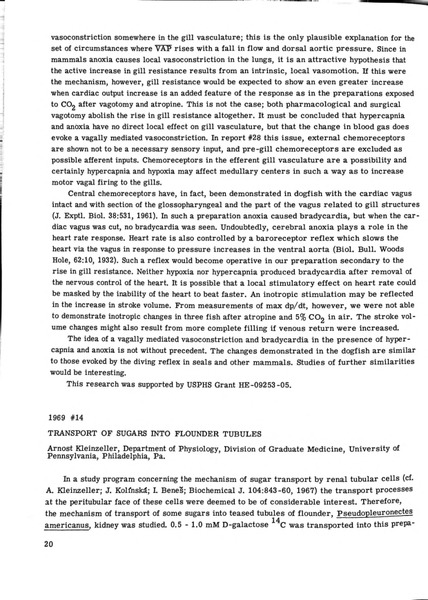 Transport of Sugars into Flounder Tubules Identifier: 10879 Title: Transport of Sugars into Flounder Tubules Author: Arnost KleinzellerUniversity of Pennsylvania Date: 1969 Species: Pseudopleuronectes americanus (was Pleuronectes americanus)Winter flounder Type: Bulletin, Report Bulletin: Volume 09 - 1969 Report: 14 Citation “Transport of Sugars into Flounder Tubules,” MDI Biological Laboratory, accessed March 23, 2026, https://digitalarchive.mdibl.org/items/show/2816.Item 10879 Save this item as a PDF file