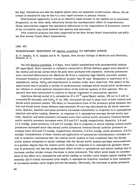 Hemodynamic Responses of Squalus acanthias to Imposed Stress Identifier: 10892 Title: Hemodynamic Responses of Squalus acanthias to Imposed Stress Author: David F. OpdykeNew Jersey College of Medicine & Dentistry Nancy E. OpdykeNew Jersey College of Medicine & Dentistry D.W. OpdykeNew Jersey College of Medicine & Dentistry Date: 1969 Species: Squalus acanthiasSpiny dogfish Type: Bulletin, Report Bulletin: Volume 09 - 1969 Report: 27 Citation “Hemodynamic Responses of Squalus acanthias to Imposed Stress,” MDI Biological Laboratory, accessed March 18, 2026, https://digitalarchive.mdibl.org/items/show/2829.Item 10892 Save this item as a PDF file