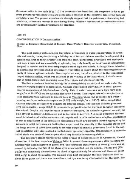 Osmoregulation in Oniscus asellus Identifier: 10834 Title: Osmoregulation in Oniscus asellus Author: Michael J. Berridge, Case Western Reserve University Date: 1968 Species: Oniscus asellus Common Name: Common woodlouse Type: Bulletin, Report Bulletin: Volume 08 - 1968 Report: 6 Citation “Osmoregulation in Oniscus asellus,” MDI Biological Laboratory, accessed January 28, 2026, https://digitalarchive.mdibl.org/items/show/2849.Item 10834 Save this item as a PDF file