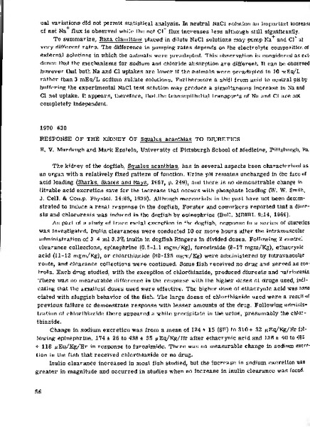 Response of the Kidney of Squalus acanthias to Diuretics Identifier: 10936 Title: Response of the Kidney of Squalus acanthias to Diuretics Author: H. Victor Murdaugh, Jr.University of Pittsburgh Mark EpsteinUniversity of Pittsburgh Date: 1970 Species: Squalus acanthiasSpiny dogfish Type: Bulletin, Report Bulletin: Volume 10 - 1970 Report: 30 Citation “Response of the Kidney of Squalus acanthias to Diuretics,” MDI Biological Laboratory, accessed March 21, 2026, https://digitalarchive.mdibl.org/items/show/2910.Item 10936 Save this item as a PDF file
