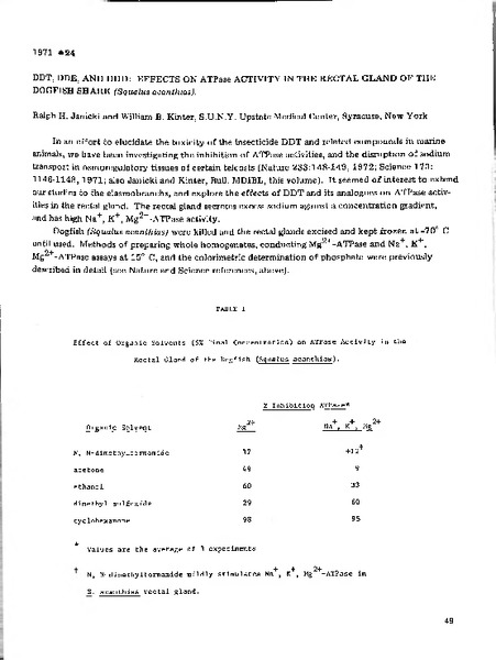 “DDT, DDE, and DDD: Effects on ATPase Activity in the Rectal Gland of the Dogfish Shark (Squalus acanthias),” MDI Biological Laboratory, accessed March 16, 2026, https://digitalarchive.mdibl.org/items/show/2941.Item 10967