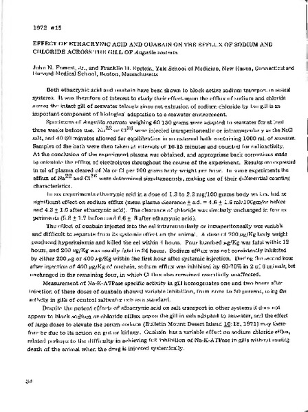 “Effect of Ethacrynic Acid and Quabain on the Efflux of Sodium and Chloride Across the Gill of Anguilla rostrata,” MDI Biological Laboratory, accessed March 16, 2026, https://digitalarchive.mdibl.org/items/show/2976.Item 11002
