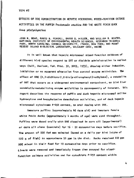 “Effects of DDE Administration on Hepatic Microsomal Mixed-Function Oxidase Activities in the Puffin Fratercula arctica and the White Pekin Duck Anas platyrhynchos,” MDI Biological Laboratory, accessed March 15, 2026, https://digitalarchive.mdibl.org/items/show/3063.Item 11089