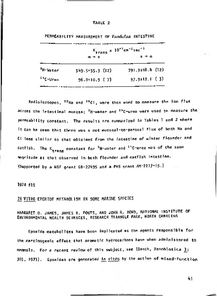 In Vitro Epoxide Metabolism in Some Marine Species Identifier: 11102 Title: In Vitro Epoxide Metabolism in Some Marine Species Author: Margaret O. JamesNational Institutes of Environmental Health Sciences James R. FoutsNational Institutes of Environmental Health Sciences John R. BendNational Institutes of Environmental Health Sciences Date: 1974 Type: Bulletin, Report Bulletin: Volume 14 - 1974 Report: 15 Citation “In Vitro Epoxide Metabolism in Some Marine Species,” MDI Biological Laboratory, accessed March 18, 2026, https://digitalarchive.mdibl.org/items/show/3076.Item 11102 Save this item as a PDF file