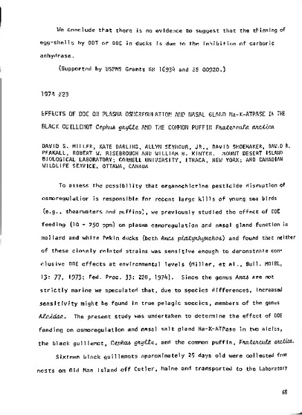 “Effects of DDE on Plasma Osmoregulation amd Nasal Gland Na-K-ATPase in the Black Guillemot Cephus grylle and the Common Puffin Fratercula arctica,” MDI Biological Laboratory, accessed March 17, 2026, https://digitalarchive.mdibl.org/items/show/3084.Item 11110