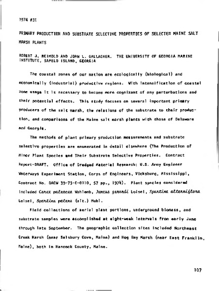“Primary Production and Substrate Selective Properties of Selected Maine Salt Marsh Plants,” MDI Biological Laboratory, accessed March 20, 2026, https://digitalarchive.mdibl.org/items/show/3092.Item 11118