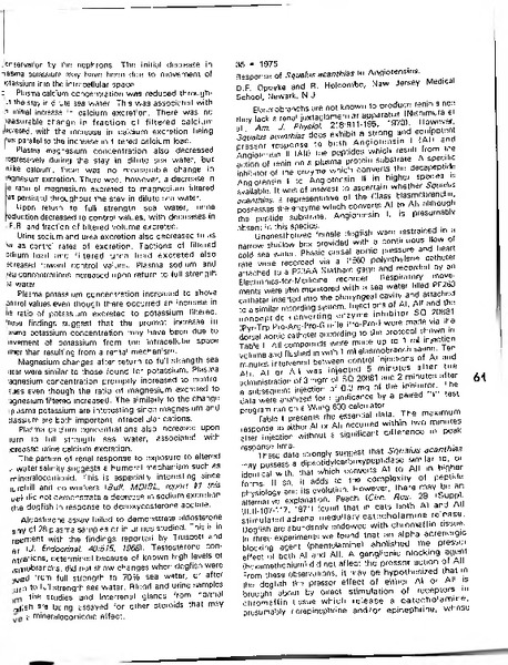 Response of Squalus acanthias to Angiotensins Identifier: 11160 Title: Response of Squalus acanthias to Angiotensins Author: David F. OpdykeNew Jersey Medical School Randall F. HolcombeNew Jersey Medical School Date: 1975 Species: Squalus acanthiasSpiny dogfish Type: Bulletin, Report Bulletin: Volume 15 - 1975 Report: 35 Citation “Response of Squalus acanthias to Angiotensins,” MDI Biological Laboratory, accessed March 21, 2026, https://digitalarchive.mdibl.org/items/show/3134.Item 11160 Save this item as a PDF file