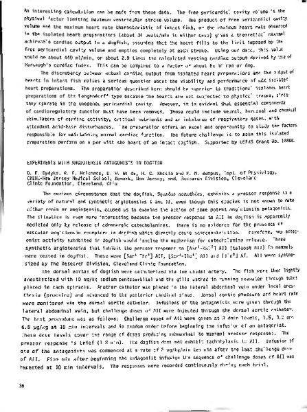 Experiments with Angiotensin Antagonists in Dogfish Identifier: 11285 Title: Experiments with Angiotensin Antagonists in Dogfish Author: David F. OpdykeNew Jersey Medical School Randall F. HolcombeNew Jersey Medical School Dixon W. WildeNew Jersey Medical School M.C. KhoslaCleveland Clinic Foundation F.M. BumpusCleveland Clinic Foundation Date: 1978 Species: Squalus acanthiasSpiny dogfish Type: Bulletin, Report Bulletin: Volume 18 - 1978 Report: 18 Citation “Experiments with Angiotensin Antagonists in Dogfish,” MDI Biological Laboratory, accessed March 17, 2026, https://digitalarchive.mdibl.org/items/show/3259.Item 11285 Save this item as a PDF file
