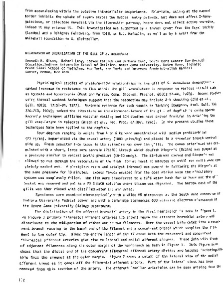 Microvascular Organization of the Gill of S. Acanthias Identifier: 11320 Title: Microvascular Organization of the Gill of S. Acanthias Author: Kenneth OlsonIndiana University Michael LevyUniversity of Notre Dame Steven FalchukIcahn School of Medicine at Mount Sinai Barbara B. KentVeterans Administration Hospital, Bronx, New York Date: 1978 Species: Squalus acanthiasSpiny dogfish Type: Bulletin, Report Bulletin: Volume 18 - 1978 Report: 53 Citation “Microvascular Organization of the Gill of S. Acanthias,” MDI Biological Laboratory, accessed March 19, 2026, https://digitalarchive.mdibl.org/items/show/3294.Item 11320 Save this item as a PDF file