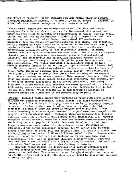 “The Effect of Organotin on the Isolated Perfused Rectal Gland of Squalus acanthias Preliminary Studies,” MDI Biological Laboratory, accessed March 22, 2026, https://digitalarchive.mdibl.org/items/show/3311.Item 11717