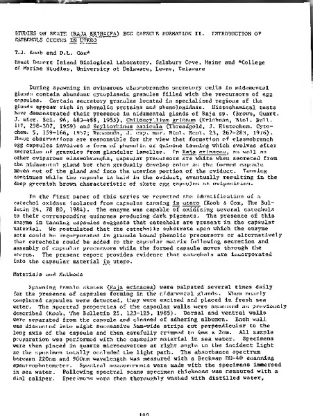 “Studies on Skate (Raja erinacea) Egg Capsule Formation II. Introduction of Catechols Occur in Utero,” MDI Biological Laboratory, accessed March 21, 2026, https://digitalarchive.mdibl.org/items/show/3334.Item 11740