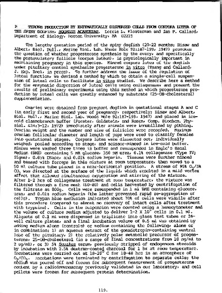 “Progesterone Production by Enzymatically Dispersed Cells from Corpora Lutea of the Spiny dogfish (Squalus acanthias),” MDI Biological Laboratory, accessed March 20, 2026, https://digitalarchive.mdibl.org/items/show/3337.Item 11743