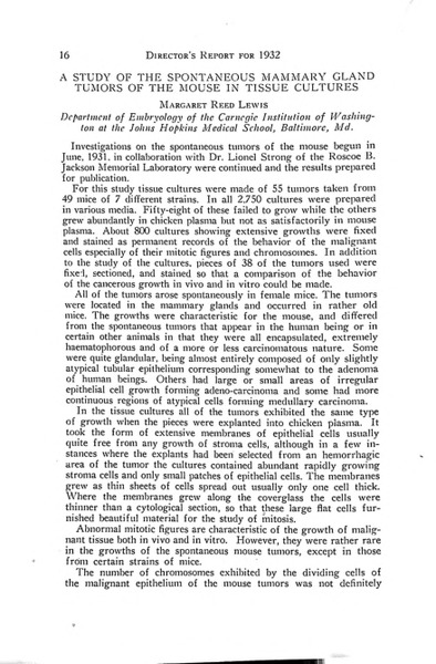 “A Study of the Spontaneous Mammary Gland Tumors of the Mouse in Tissue Cultures,” MDI Biological Laboratory, accessed December 14, 2025, https://digitalarchive.mdibl.org/items/show/720.Item 10236