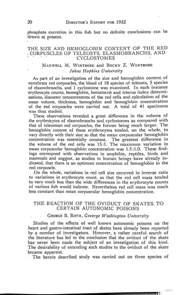 “The Size and Hemoglobin Content of the Red Corpuscles of Teleosts, Elasmobranchs, and Cyclostomes,” MDI Biological Laboratory, accessed December 14, 2025, https://digitalarchive.mdibl.org/items/show/724.Item 10240