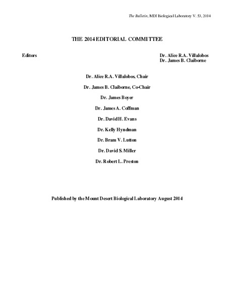 Volume 53 - 2013 Identifier: 10060 Title: Volume 53 - 2013 Date: 2013 Type: Bulletin Imported: Yes ReportsItem 12932 5' AMP-activated protein kinase regulates chloride secretion and is phosphorylated in the dogfish shark (Squalus acanthias) rectal gland under hypoxic conditions and co-immunoprecipitates with CFTRItem 12933 Strategies to Establish a Continuous Cell Line in the Shark Rectal Gland of Squalus acanthiasItem 12934 Characterization of a Bile Salt Transport System in Isolated Hepatocytes from Adult Sea Lamprey (Petromyzon marinus)Item 12935 Lack of Evidence that Endogenous Fatty Acids Can Support Chloride Secretion in the Rectal Gland of Squalus acanthiasItem 12936 Identification of Mitochondrial Enzymes mRNA in the Rectal Gland of Squalus acanthiasItem 12937 Rhesus Glycoproteins in Dogfish Shark (Squalus acanthias) in Response to Hypo-Osmotic StressItem 12938 Successful Knockdown of Aquaporin 1 (AQP1) Protein Expression in American Eel (Anguilla rostrata) Gastrointestinal Tract Using Direct-Infusions of Vivo-MorpholinosItem 12939 A Novel Immune Processing Mechanism in the Leydig Organ of the Skate, Leucoraja erinaceaItem 12940 Novel Bioinformatics Tools for Analysis of Gene Expression in the Skate, Leucoraja erinaceaItem 12941 Water Content of Different Tissues of Squalus acanthiasItem 12942 Metal Ion Effects on Ciliary Differentiation in Lytechinus pictus and Echinarachnius parma EmbryosItem 12943 Sediment Microbial Community Profiles Along a Metal-Laden Leachate GradientItem 12944 Restoration by Seeding in Zostera marina - A Progress ReportItem 12945 A Citizen Science Approach to Mapping Eelgrass (Zostera marina L.) Loss in MaineItem 12946 Possible Causes of Eelgrass (Zostera marina L.) Loss in Frenchman Bay, MaineItem 12947 The Fate of Fundulus heteroclitus Embryos Ingested by Adult KillifishShow 10 more Other Attachments 1 Citation “Volume 53 - 2013,” MDI Biological Laboratory, accessed December 14, 2025, https://digitalarchive.mdibl.org/items/show/791.Item 10060 Save this item as a PDF file